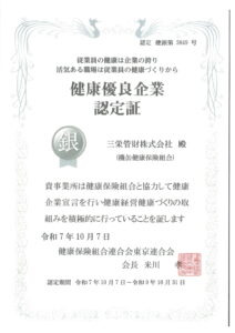 三栄管財株式会社が「健康優良企業・銀」に認定されました。